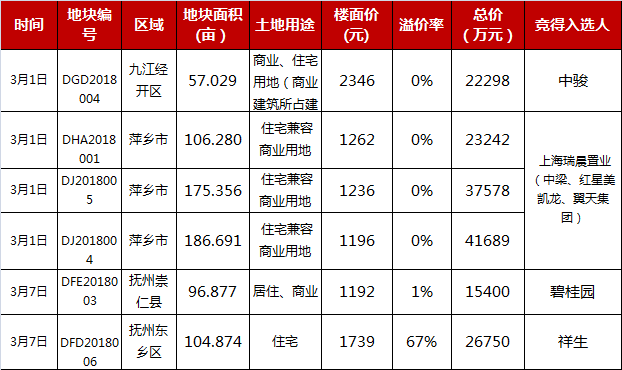 其中,南昌成交3宗,出讓面積9.45萬方,出讓金額約8.06億元。江西其他地市共成交171宗經(jīng)營性用地,面積約405.84萬㎡,總成交金額約127.23萬方。