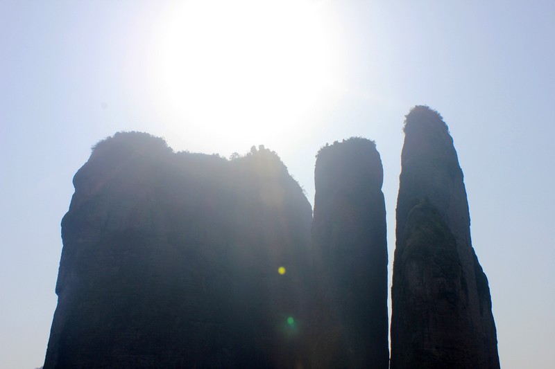 經(jīng)過一個多小時的路程和半個小時的盤山公路,我們終于到達了江郎山腳下,一下車建亨的女同胞們一個個精神飽滿,好奇無比,首先映入眼簾的是三座高聳的奇峰,大家都在抬頭觀望,感嘆眼前這座山峰神奇,這三座高峰都是由地上往上長的,好像它來自天外,它與周圍的山峰毫不相關(guān),而且遠遠高于周圍的山峰,聽了導(dǎo)游的介紹才知道,這三座山有一個非常美麗的傳說,傳說三兄弟同時喜歡上仙女麻姑,麻姑拿不定主意,為了考驗三兄弟的誠意,訂下了十年相見的契約,誰堅守契約就能得到她。誰知十年后,麻姑忘了這回事,兄弟三人在山腳下等呀等,等成了三座山。故事雖然編得較為牽強,但也不失為一個凄婉動人的傳說。
