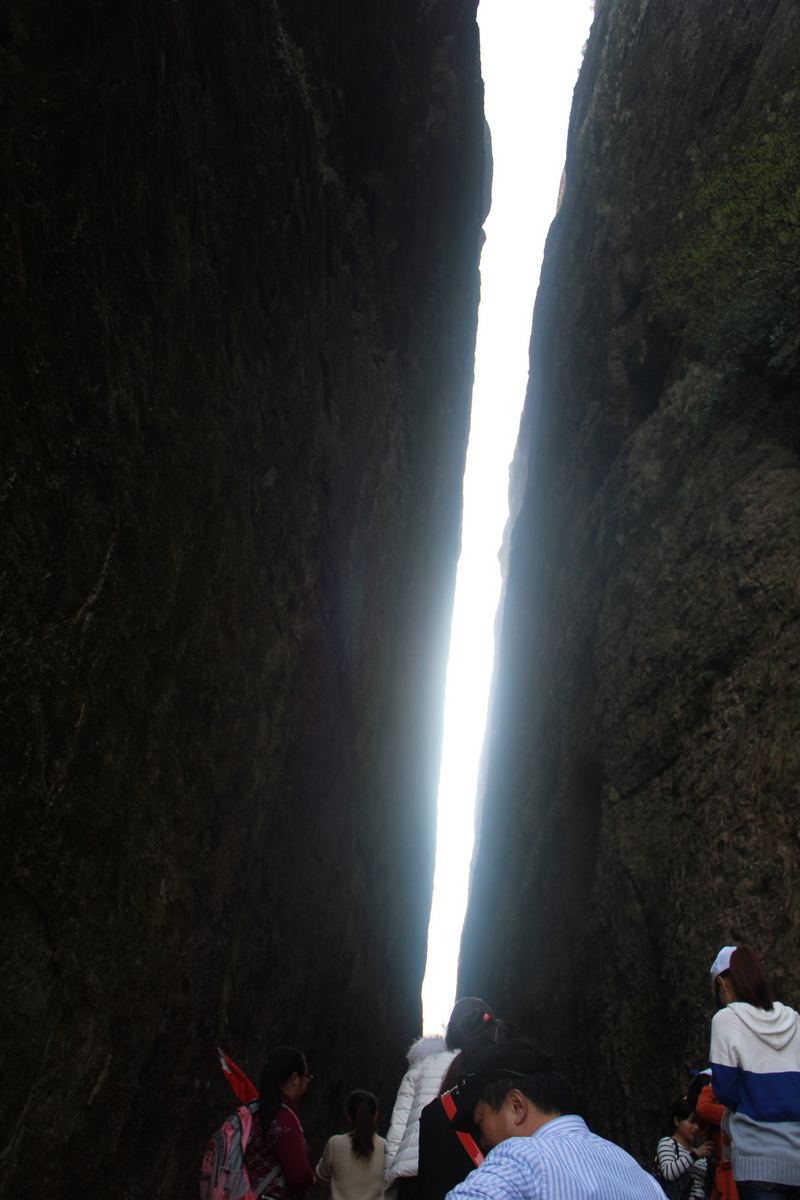 在導(dǎo)游的帶領(lǐng)下,我們迫不急待的邁開腳步,開始了今天對江郎山高峰的征服之旅,大家你一言我一語的向山頂進發(fā),還時不時的停下來記錄江郎山的美景,很快我們就到了“一線天”。大家都在駐足議論一線天的神奇,一線天長約三百余米,寬3-5米,這是目前中國所有山峰里面最長最寬的“一線天”從右邊的伏羲洞探身入內(nèi),可見一線天光如跨空碧虹,鬼斧神工令人嘆為觀止。