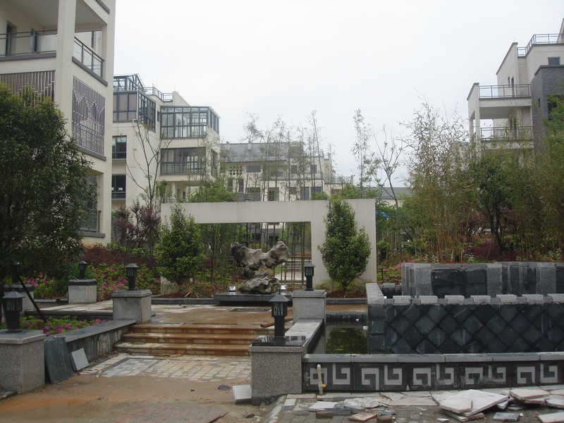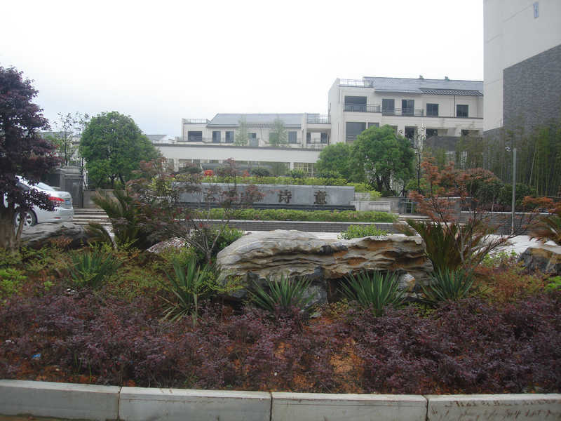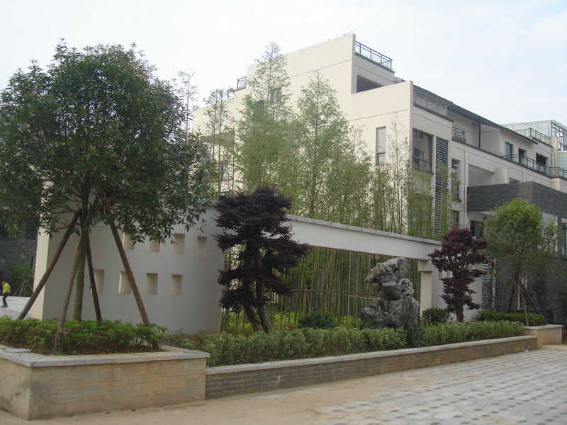 本項目具有現(xiàn)代中式徽派現(xiàn)代生態(tài)園林的特點,主要表現(xiàn)在:一是在營造現(xiàn)代、簡潔的植物空間的同時,又具有濃厚的中國氣息,如本小區(qū)的植物多選擇枝干修長、葉片飄逸、花小色淡的種類為主,如剛竹、垂柳、桂花、梅花、玉蘭、芭蕉、黃馨、菖蒲、鳶尾等,營造簡潔、明凈而極具中國文化意境的植物空間。二是以徽派文化內(nèi)涵為基本內(nèi)容,體現(xiàn)徽派文化的底蘊。尤其是以徽派的松、竹、梅、蘭、石為基本素材建園,求得園內(nèi)構(gòu)建與園外大環(huán)境的和諧統(tǒng)一,體現(xiàn)中國的傳統(tǒng)文化。如本小區(qū)中種植的五針?biāo)?、剛竹、臘梅、紅梅、廣玉蘭、紫玉蘭及布置的太湖石、千層石等。三是景觀色彩上采用樸素、典雅的顏色,穿插小量的亮色,通過古樸而不失現(xiàn)代的親和感覺,與徽派建筑外墻的灰、白二色相協(xié)調(diào),低調(diào)而內(nèi)斂,映襯在綠色的背景下顯得清新而淡雅。