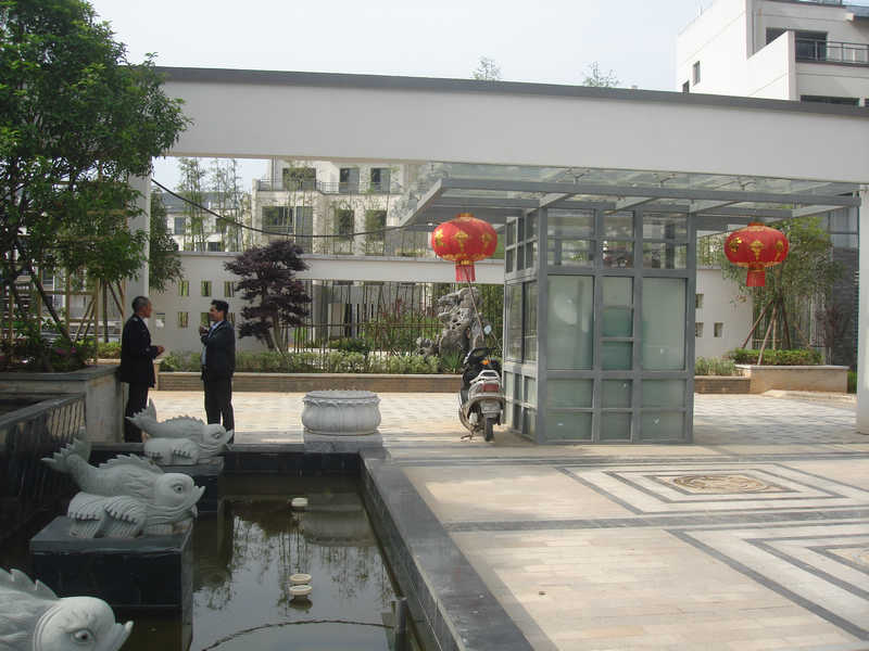 疊水潺潺、綠樹成蔭,景墻前精心挑選的太湖石景石,咋看好似動物嬉戲圖:看!一只羊騎正騎在一頭躺著休息的水牛背上,是那么的親密無間,相親相愛!又有人說,景石像中國地圖等等,此處已成為人們步入小區(qū)后的視覺焦點,每當(dāng)游人停留在景墻前,一定浮想聯(lián)翩,余味無窮。每當(dāng)夜幕降臨,水池邊的方形石燈中透出溫馨的燈光,照亮回家的路。