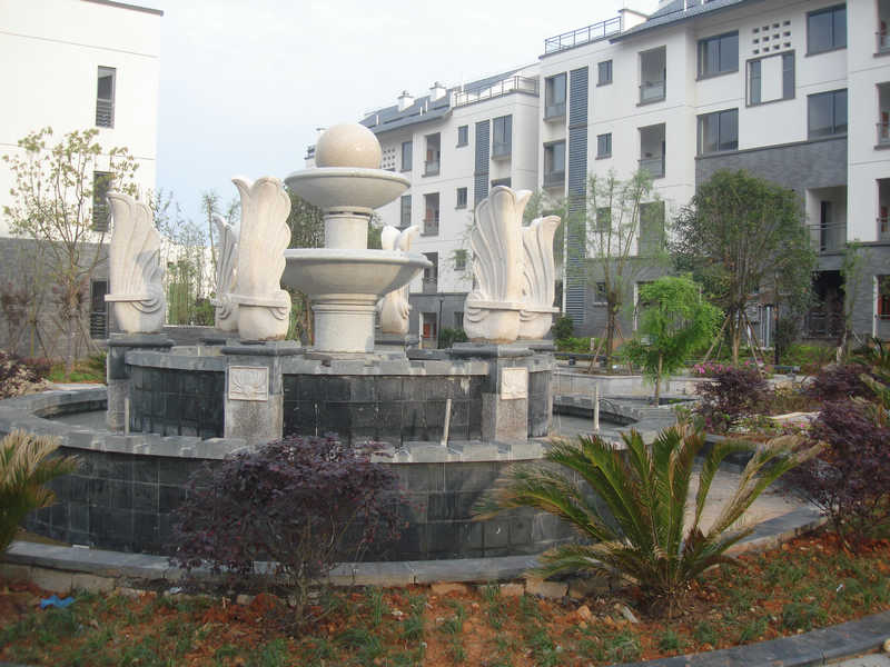 圓形放射的構(gòu)圖仿佛是水的源泉一圈圈向四周擴散,綠化與地面的鋪裝相互交融,形成統(tǒng)一的秩序。最核心的水源內(nèi)能涌起一股2.5米高的噴泉,形成整個水之源的視覺焦點。此景點特意在大理石石碑上雕刻了婺源名人、宋代理學(xué)家朱熹的一首富有哲理的名詩《觀書有感》:半畝方糖一鑒開,天光云影共徘回。問渠哪得清如許,為有源頭活水來。此詩寓意深刻,以源頭活水比喻學(xué)習(xí),告訴人們:要不斷吸取新知識,才有日新月異的進(jìn)步。給人以啟迪,體現(xiàn)了婺源濃厚的文化底蘊,也點了”云山詩意“樓盤的題。