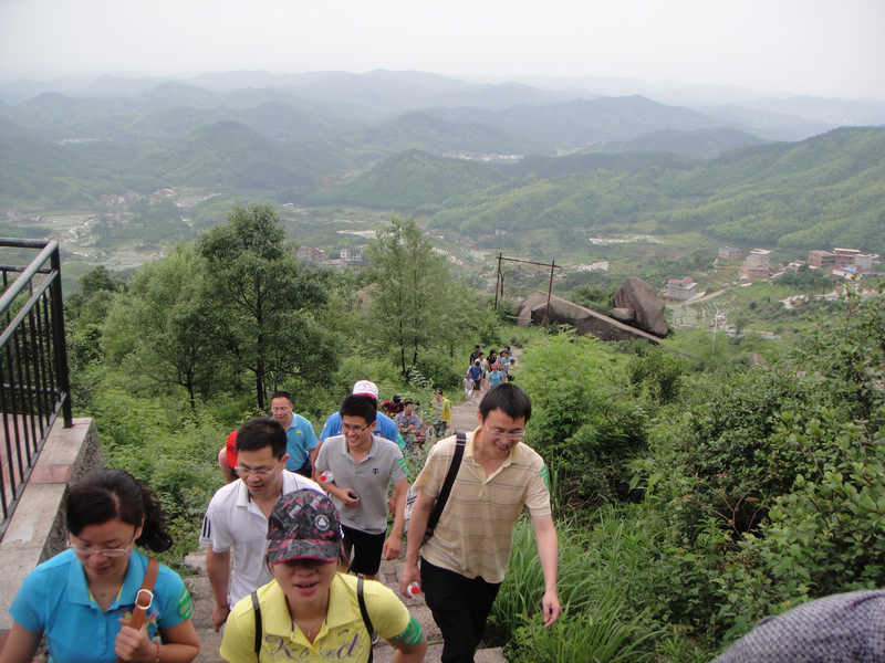 端午節(jié)前后登高是建亨集團(tuán)的傳統(tǒng)文化活動(dòng),每年的端午節(jié)前后,集團(tuán)總部領(lǐng)導(dǎo)都會(huì)帶領(lǐng)所有員工登高,到今年已經(jīng)是第五屆了。以往幾屆公司領(lǐng)導(dǎo)都是帶領(lǐng)大家征服市區(qū)森林公園的云碧峰。2013年,公司將向更高的目標(biāo)——靈山風(fēng)景區(qū)迷仙宮發(fā)起挑戰(zhàn)。6月11日早上7:30分,集團(tuán)總部及上饒所屬各分(子)公司員工乘坐大巴車向著目標(biāo)地開進(jìn),經(jīng)過40分鐘的車程,大家已經(jīng)來到了本次登山的起點(diǎn)地水晶巖。為增加登山活動(dòng)的趣味性也為體現(xiàn)公司員工之間的團(tuán)隊(duì)協(xié)作意識(shí),活動(dòng)組織方專門制定了登山比賽規(guī)則,本次登山以三人一組為單位,進(jìn)行團(tuán)隊(duì)競爭比賽,整組隊(duì)員同時(shí)全部登頂就可獲得獎(jiǎng)品一份,這讓每一位參加登山人員早已摩拳擦掌、躍躍欲試了。經(jīng)過教練講解完登山安全注意事項(xiàng)及簡單動(dòng)員后,本次征服之旅正式鳴哨啟動(dòng)。