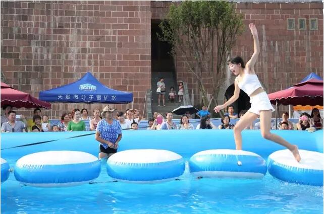 選手需要走過3米長的充氣獨木橋,嚴禁爬行,考驗選手的平衡能力。